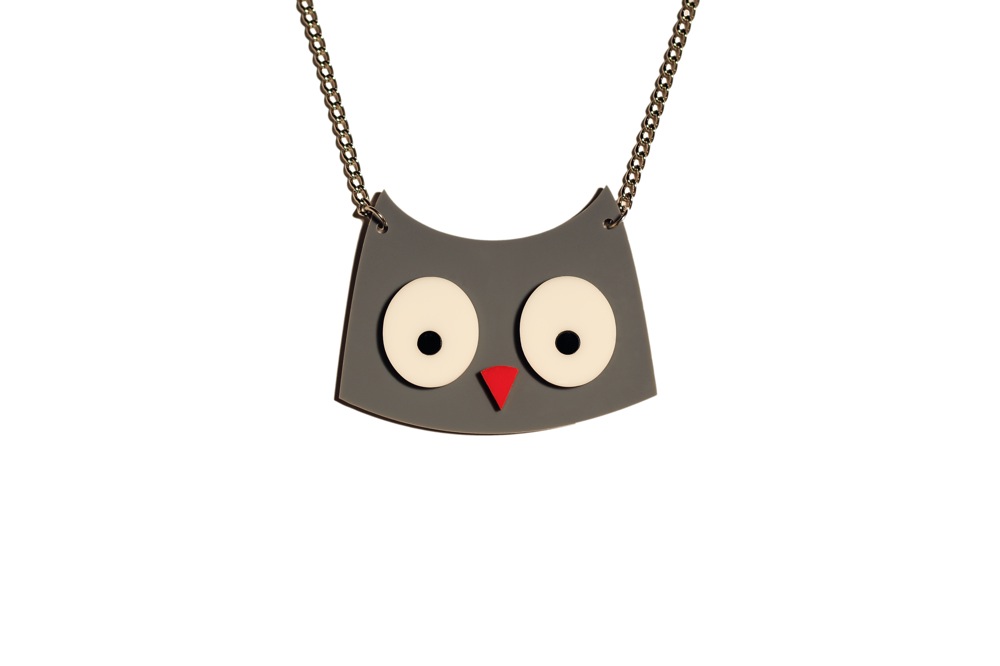 A M/L size lasercut orange/white/black plexiglass OWL pendant on a silver coloured metal chain. 3 various owl designs available, pick your Lucky Hu-Huuu