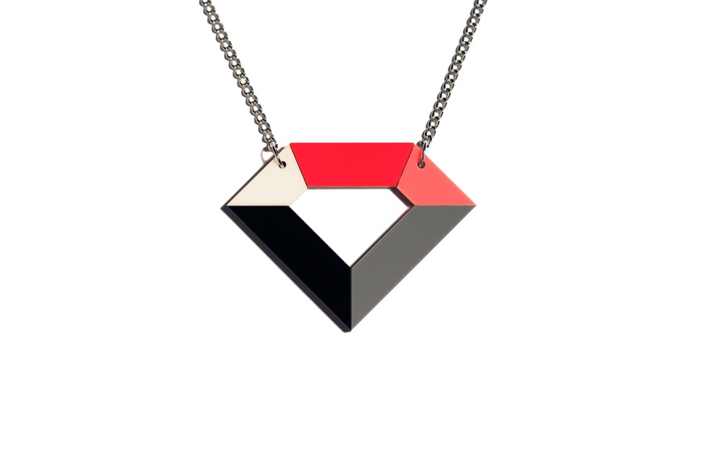 A M size lasercut plexiglass PORTAL pendant on a silver colored metal chain.